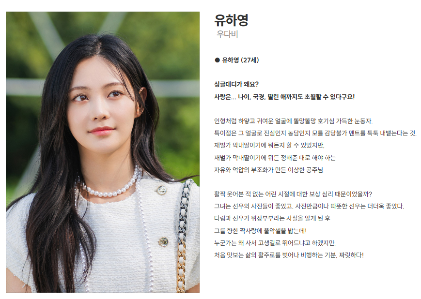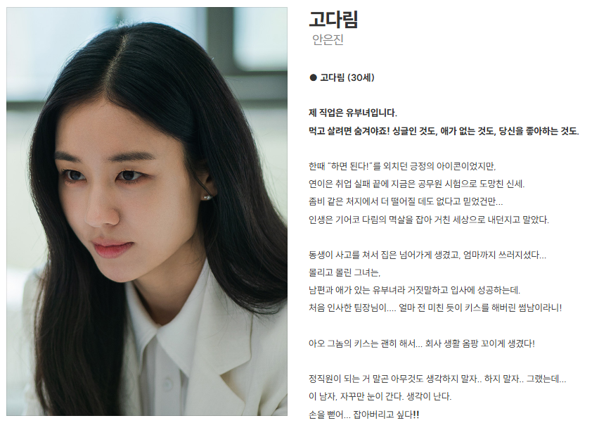먼저 많은 시청자들이 기대하는 건 단연 장기용·안은진 투샷이다. 장기용은 부드러우면서도 차가운 면을 동시에 가진 캐릭터를 잘 소화해왔고, 안은진은 현실적인 말투와 표정으로 공감을 끌어내는 연기에 강점이 있다.